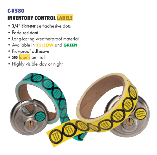 Any similar label that you place on EVERY customer lock. Pick-proof is best so they can't take it off one and put it on another. Using these makes it instantly visible when one is missing and you need to investigate the unit activity.